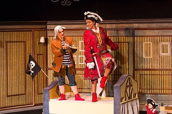 Cynthia Falabella e Antoniela Cantio interpretam Peter Pan e Wendy, respectivamente, além de se revezarem em vários outros personagens - do Capitão Gancho à cachorra Nana, passando pela fada Sininho às sereias da Terra do Nunca, de Miguel (irmãozinho de Wendy) ao cacique da tribo Piaçaba, sempre com soluções originais e criatividade, marca registrada da Cia Le Plat du Jour, de Carla Candiotto e Alexandra Golik